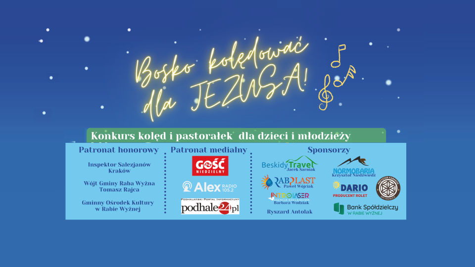 - Zapraszamy na Koncert Laureatów Konkursu Kolęd „Bosko kolędować dla Jezusa”. Dzisiaj o godz. 14.00, w kościele.